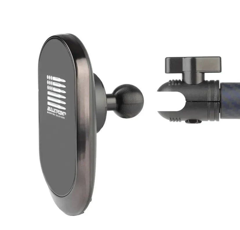 No cables. No fumbling. Just mount and charge. The Bulletpoint Wireless Charger combines MagSafe technology with a motorized locking cradle that automatically secures your phone in place. Built for high-vibration use and off-road environments, it delivers fast, reliable charging on every journey.